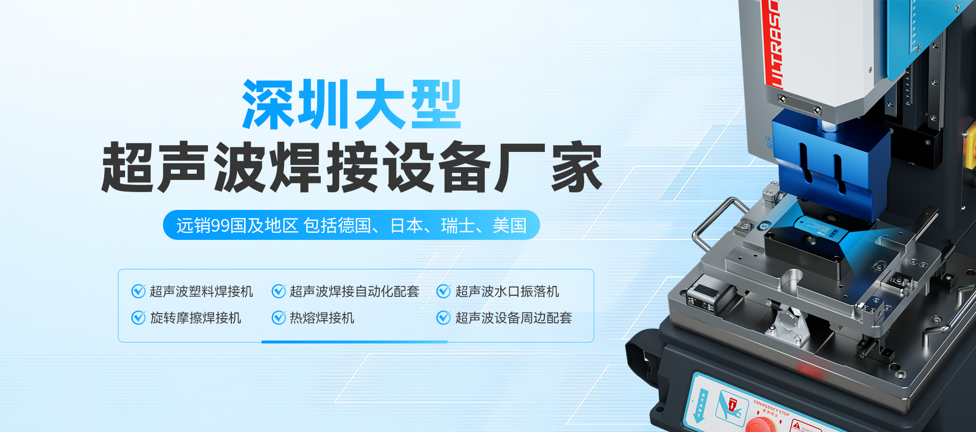 優(yōu)質(zhì)服務(wù)為海內(nèi)外各行業(yè)、企業(yè)提供了大量穩(wěn)定性強(qiáng)的優(yōu)質(zhì)超聲波塑焊設(shè)備及應(yīng)用解決方案